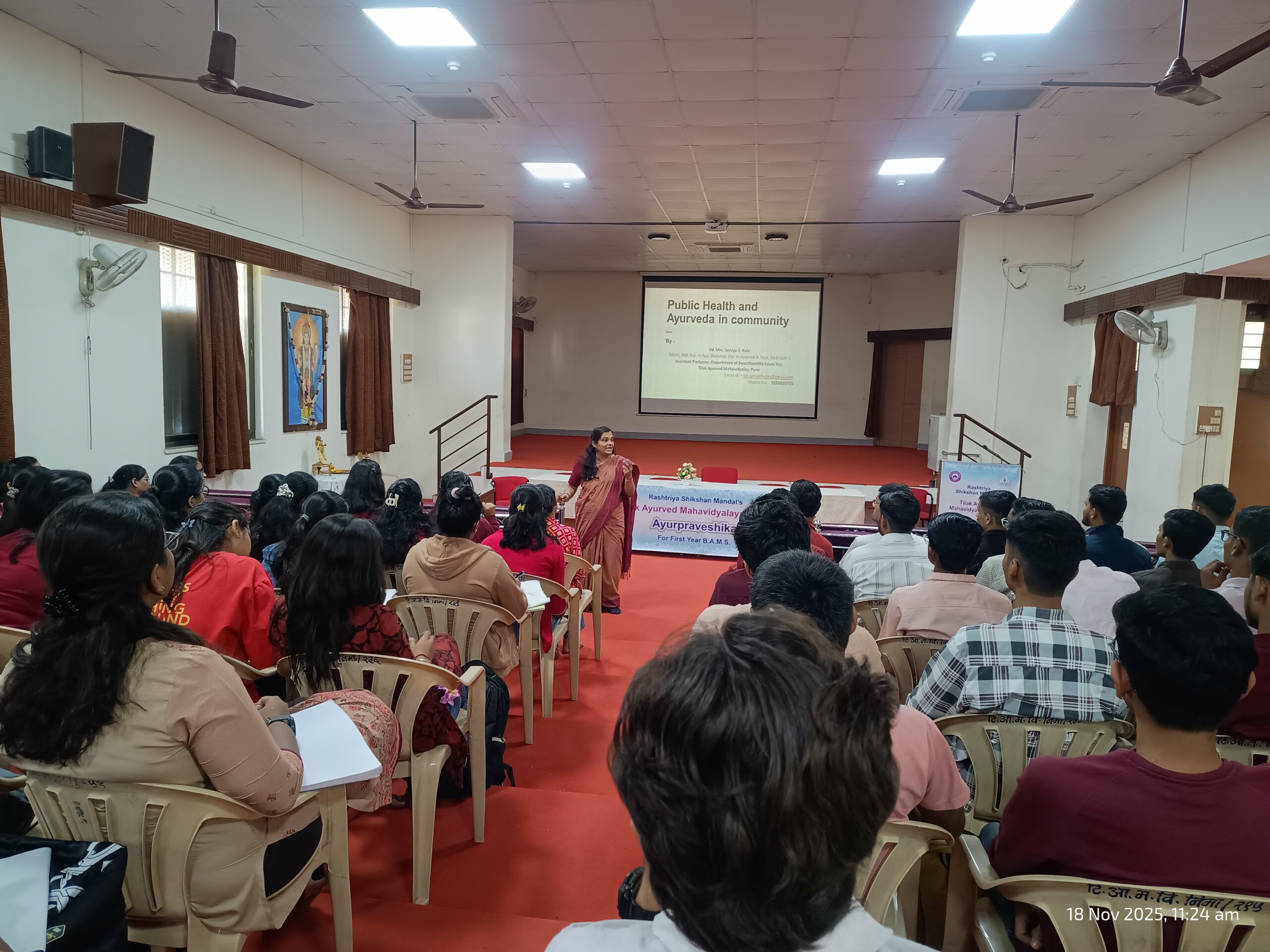 As per NCISM guidelines, ‘Ayurpraveshika- 2025-26’ was organized at Tilak Ayurved Mahavidyalaya by the Department of Rachana Sharir.