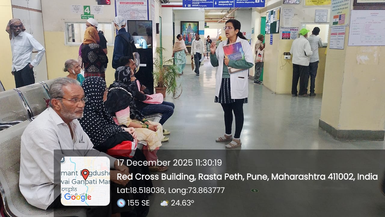 Interactive Patient Awareness Programme on Sensitization of ADR was organized by PPvC, Tilak Ayurved Mahavidyalay, Pune on 17th December 2025 at OPD Patients waiting Area of Seth Tarachand Ramnath Ayurvedic Hospital, Pune at 11.30am.