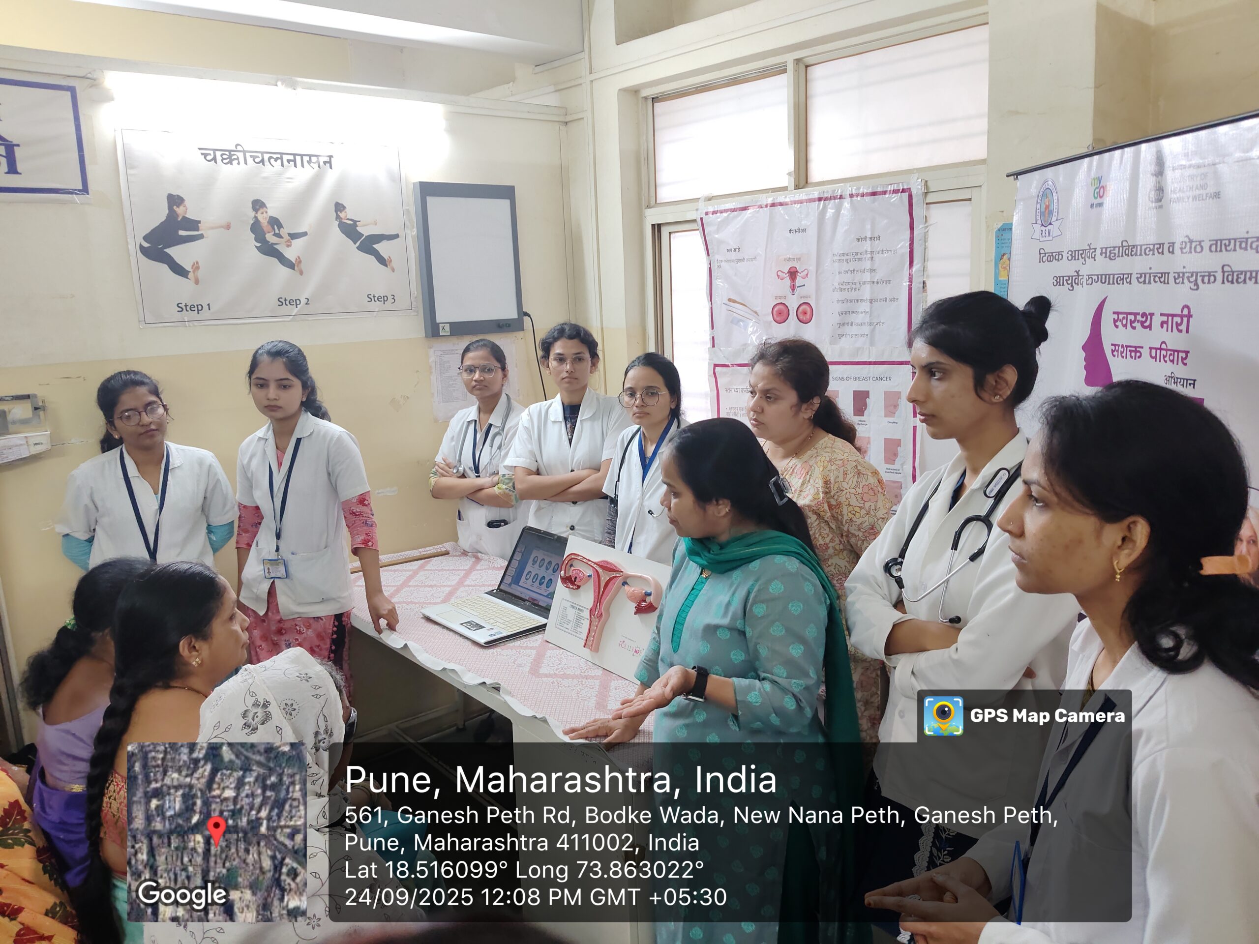 Swastha Nari Sashakta Pariwar Abhiyan was executed by Streerog prasutitantra department of Tilak Ayurved Mahavidyalaya in collaboration with NSS unit of our college and Seth Tarachand Ramnath Ayurvedic Charitable Hospital.